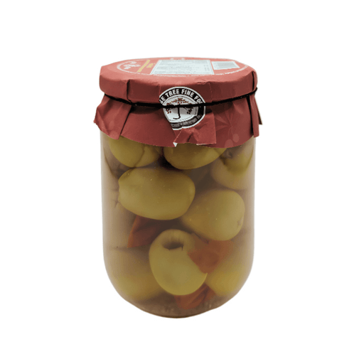 JesseTreeGreen Spanish Gordal olives stuffed with natural red peppers. Large and crisp, with a mild, savoury flavour and a hint of sweetness. Non-GMO ...