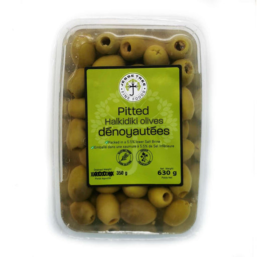 JesseTreePitted Halkidiki green olives, harvested from sunny groves in Greece. Known for their large size, firm texture, and mild, nutty taste. Non-GMO ...