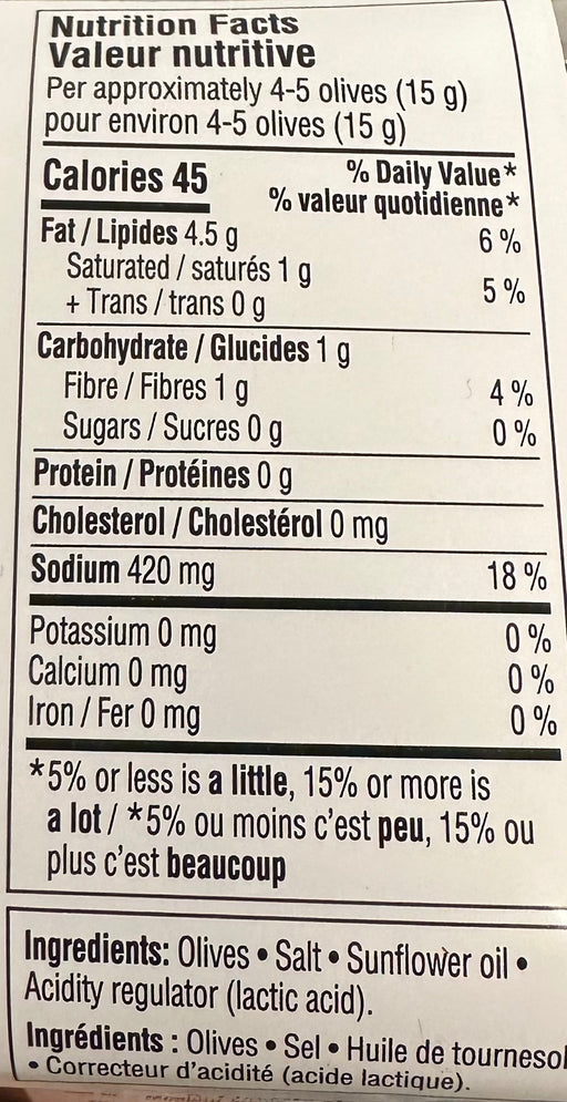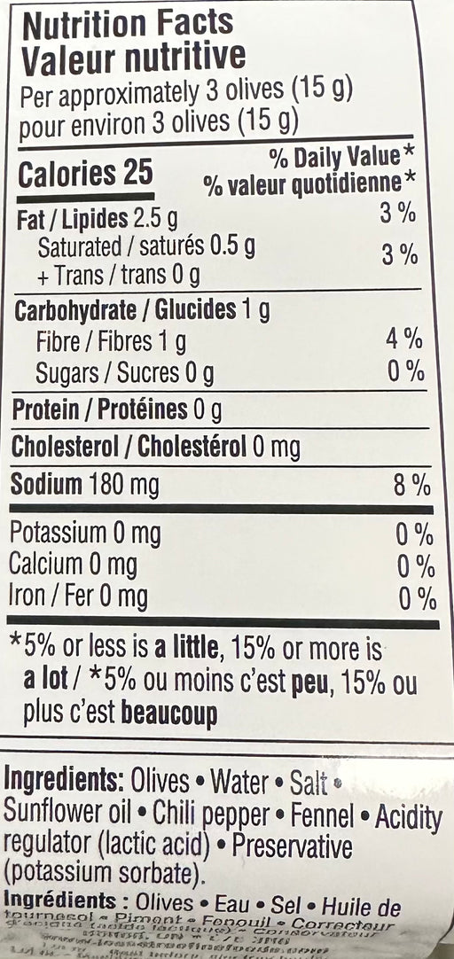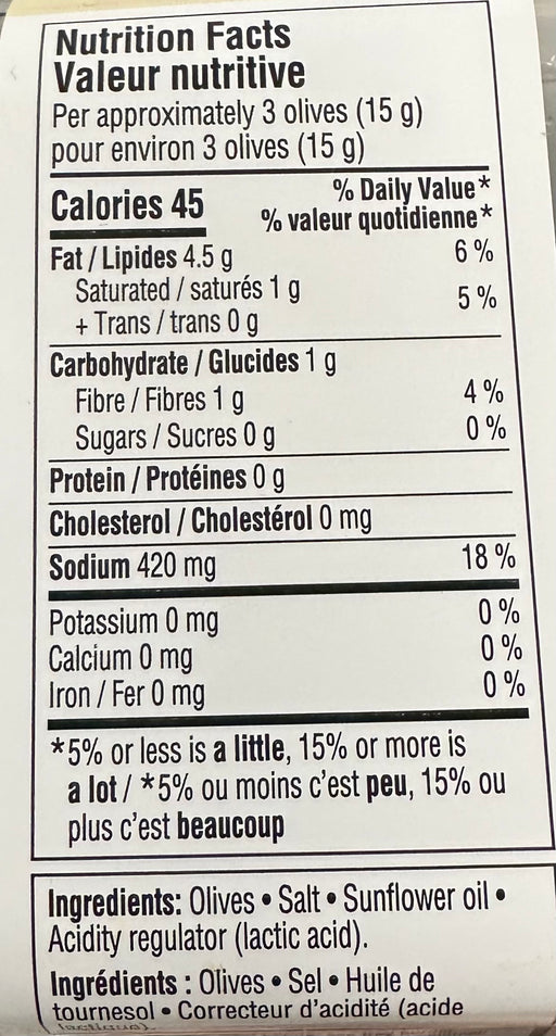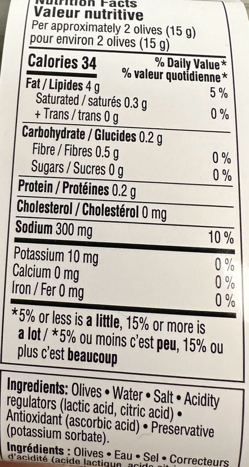 Jesse Tree Fine FoodsGreen Calabrese Picholine olives, firm yet smooth and buttery, with a light, nutty flavour. Non-GMO Product of Italy Packed in a lower-sodiu...